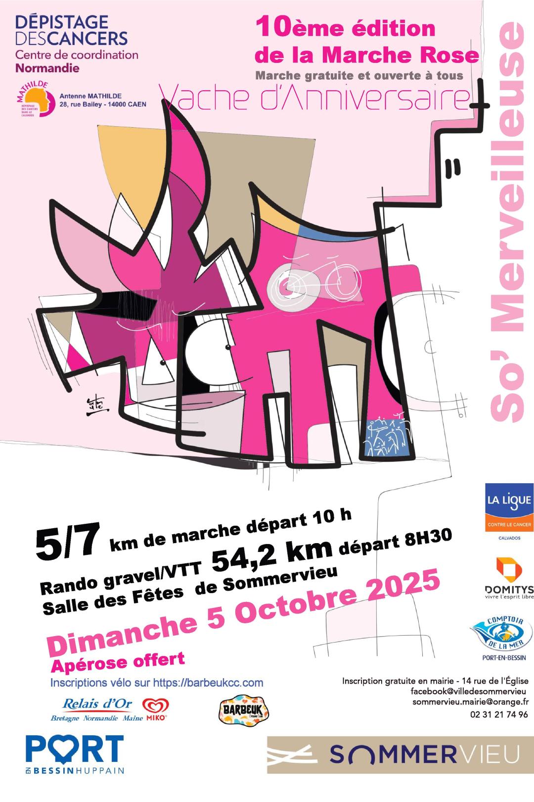 Le DIMANCHE 5 OCTOBRE, Sommervieu organise la 10ème édition de sa marche rose, la So’Merveilleuse.